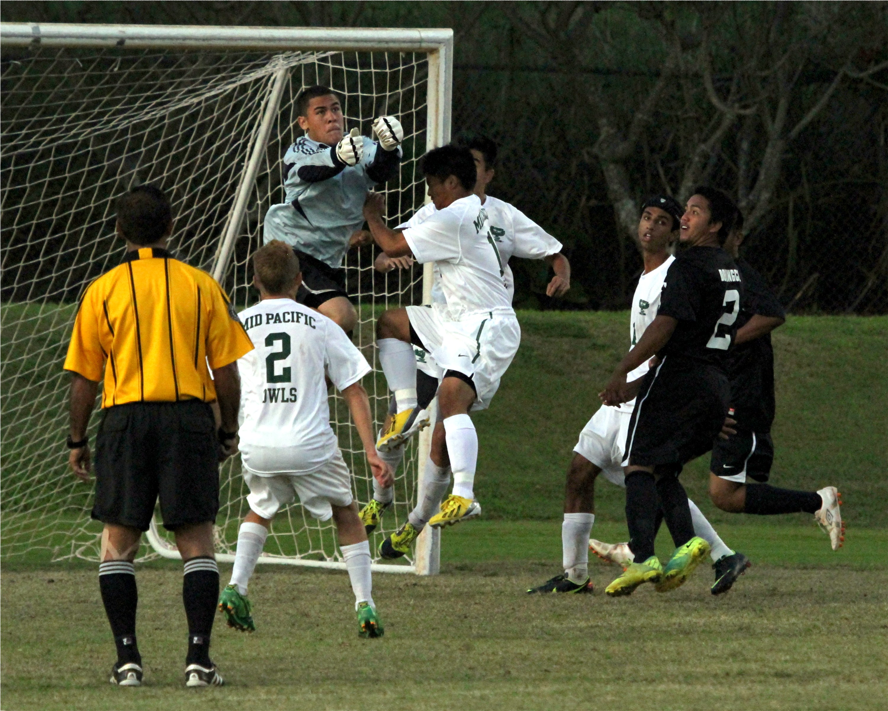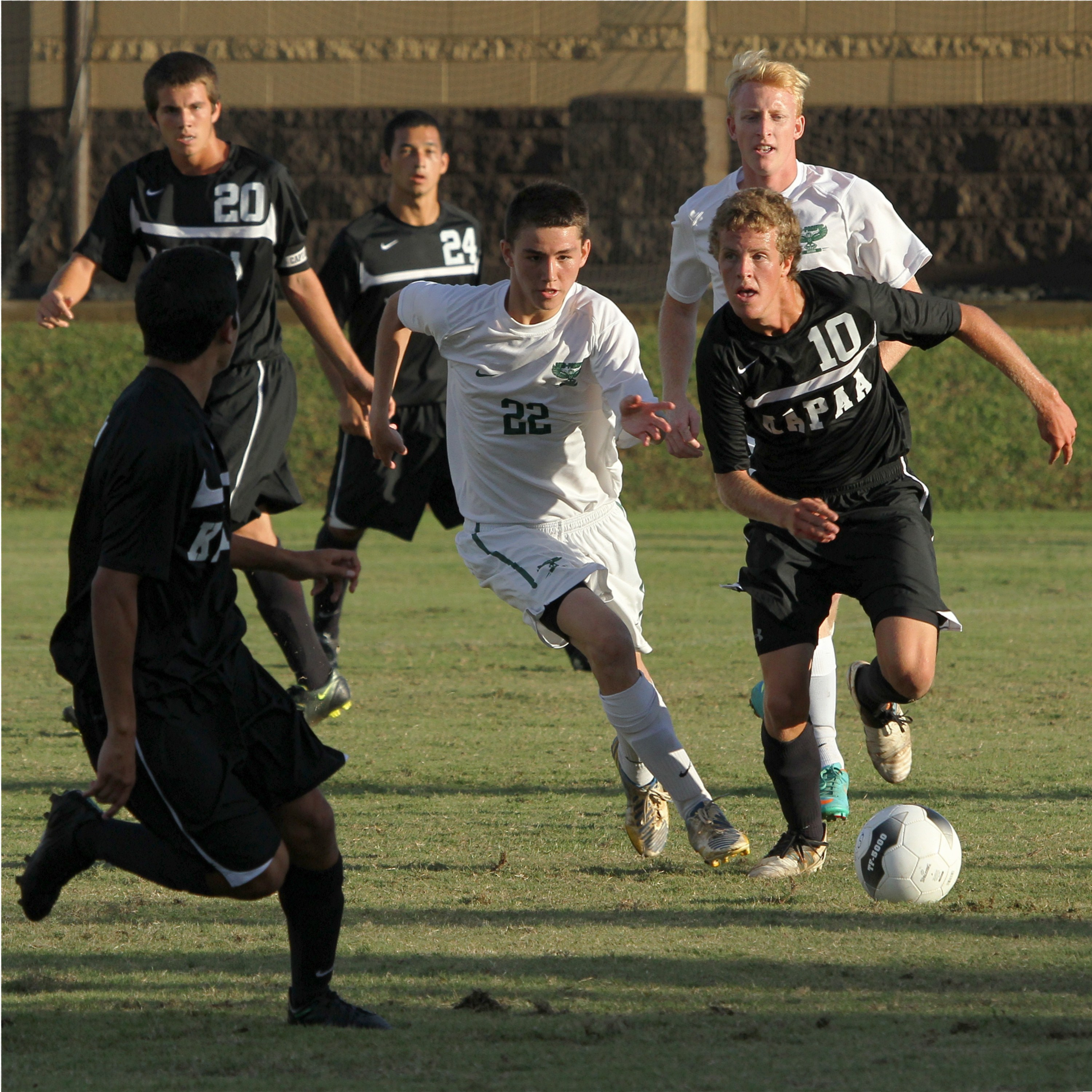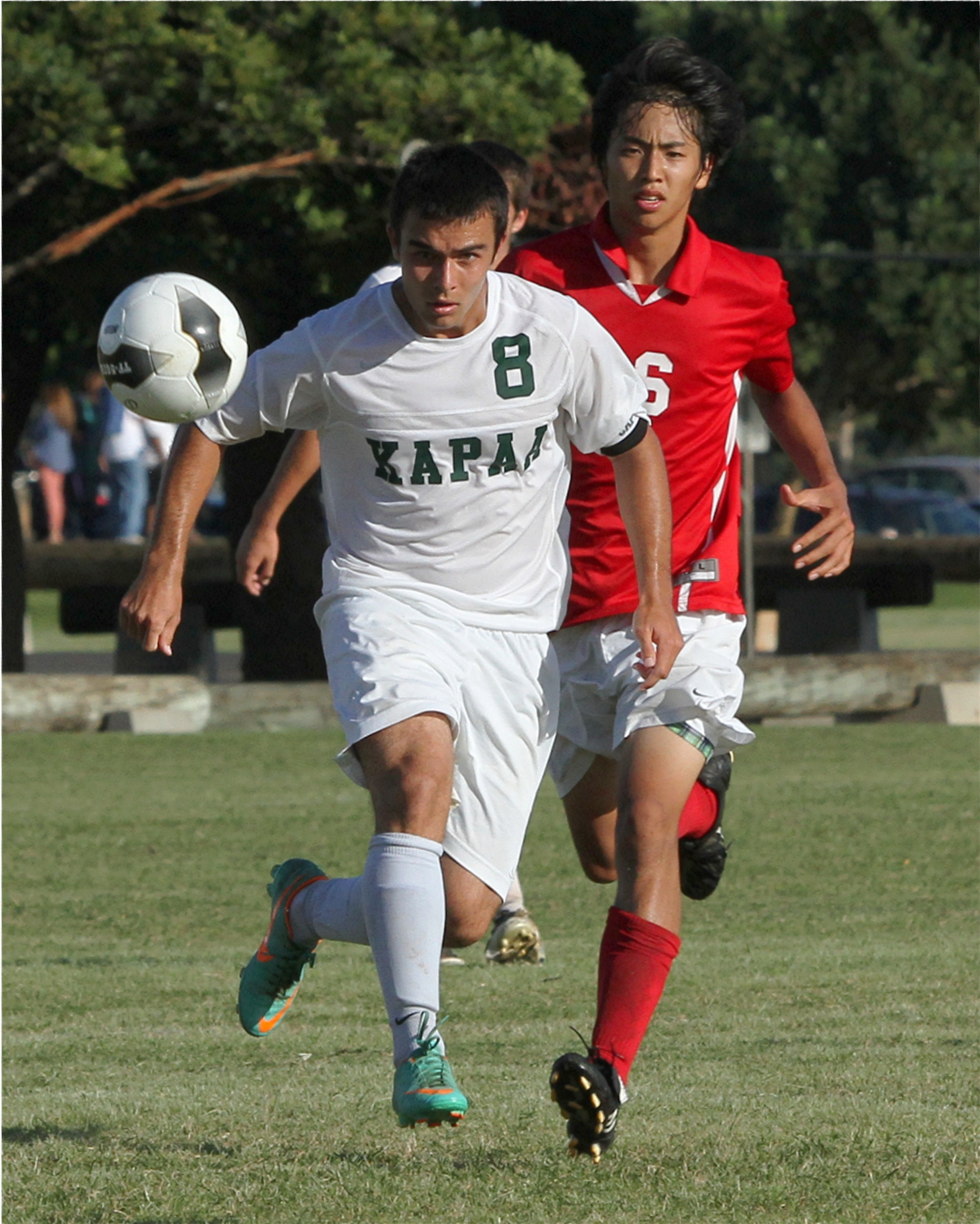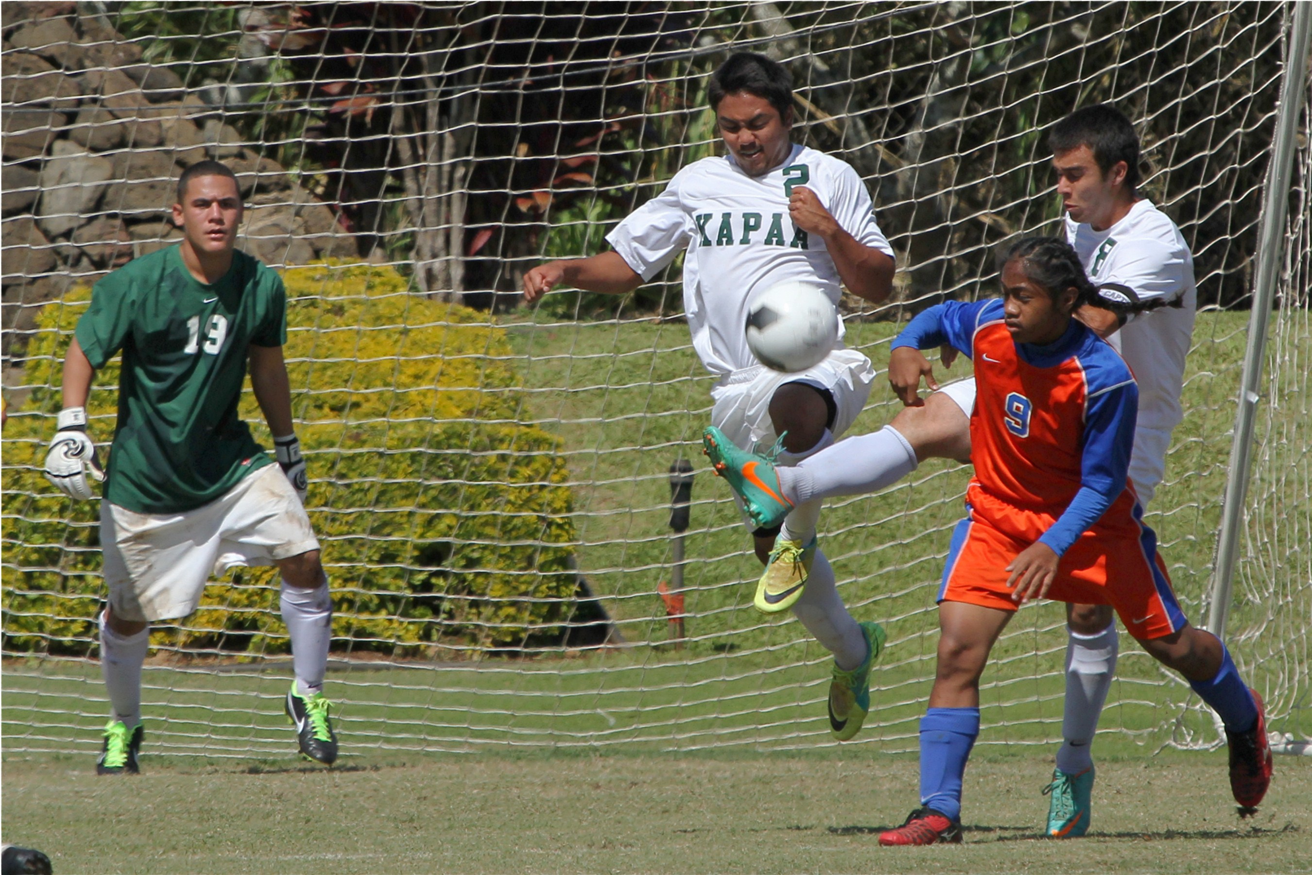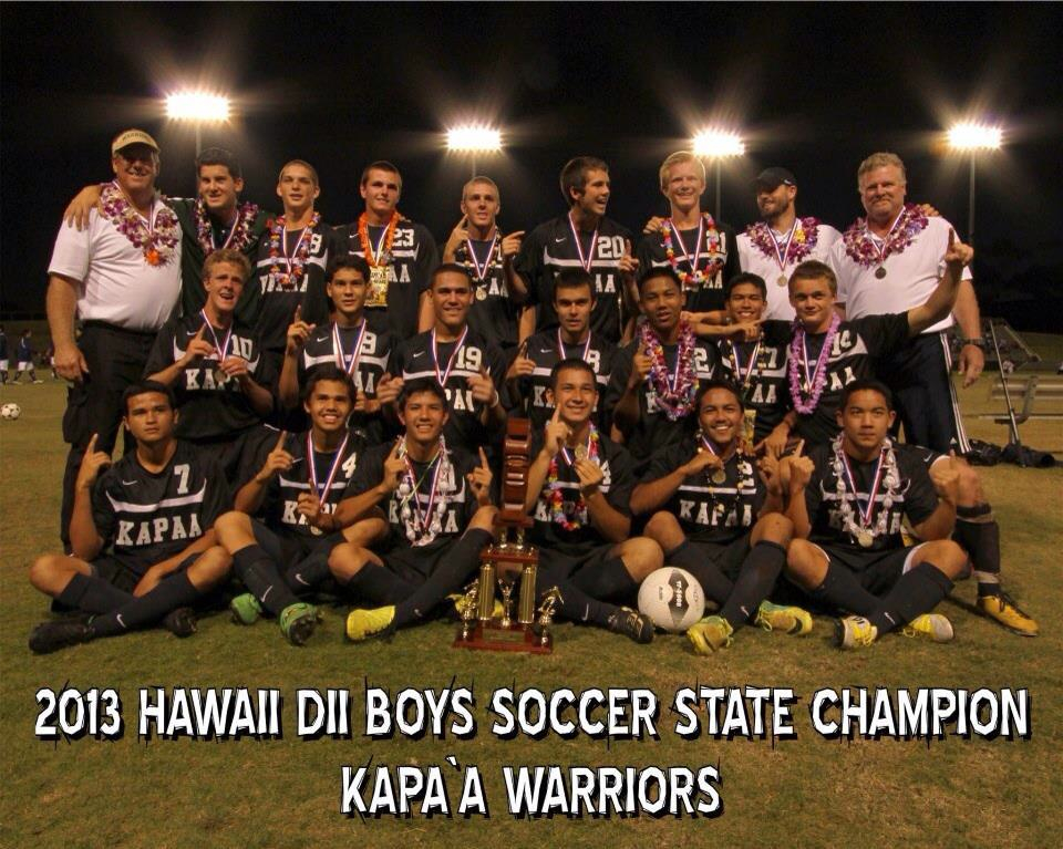 The Kapaa High Boys Soccer team captured the State  Division II Championship title by defeating Mid Pac 2-1 at the Waipio Soccer Stadium on February 9, 2013.  After winning the KIF title they beat a tough Hawaii Prep Academy team 4-3.   They then beat Kalaheo 5-2 to advance to the championship game.  This was the teams third consecutive appearance in the State Championship game and the team with 11 seniors was determined not to let this one get away.Head Coach Kevin Cram and some of the boys came to the last Foundation board meeting to share their tournament experiences.  ” We are the best equipped team on the island.” he said, thanking the Foundation for the financial and moral support.( The Foundation helped in purchasing balls and uniforms earlier in the season)  He also mentioned that  the boys are also doing well academically,  with a number of them being honor students with gpas of 3.4 or higher.  Foundation Board member Bob Kubota  commended the team for showing leadership on and off the field.