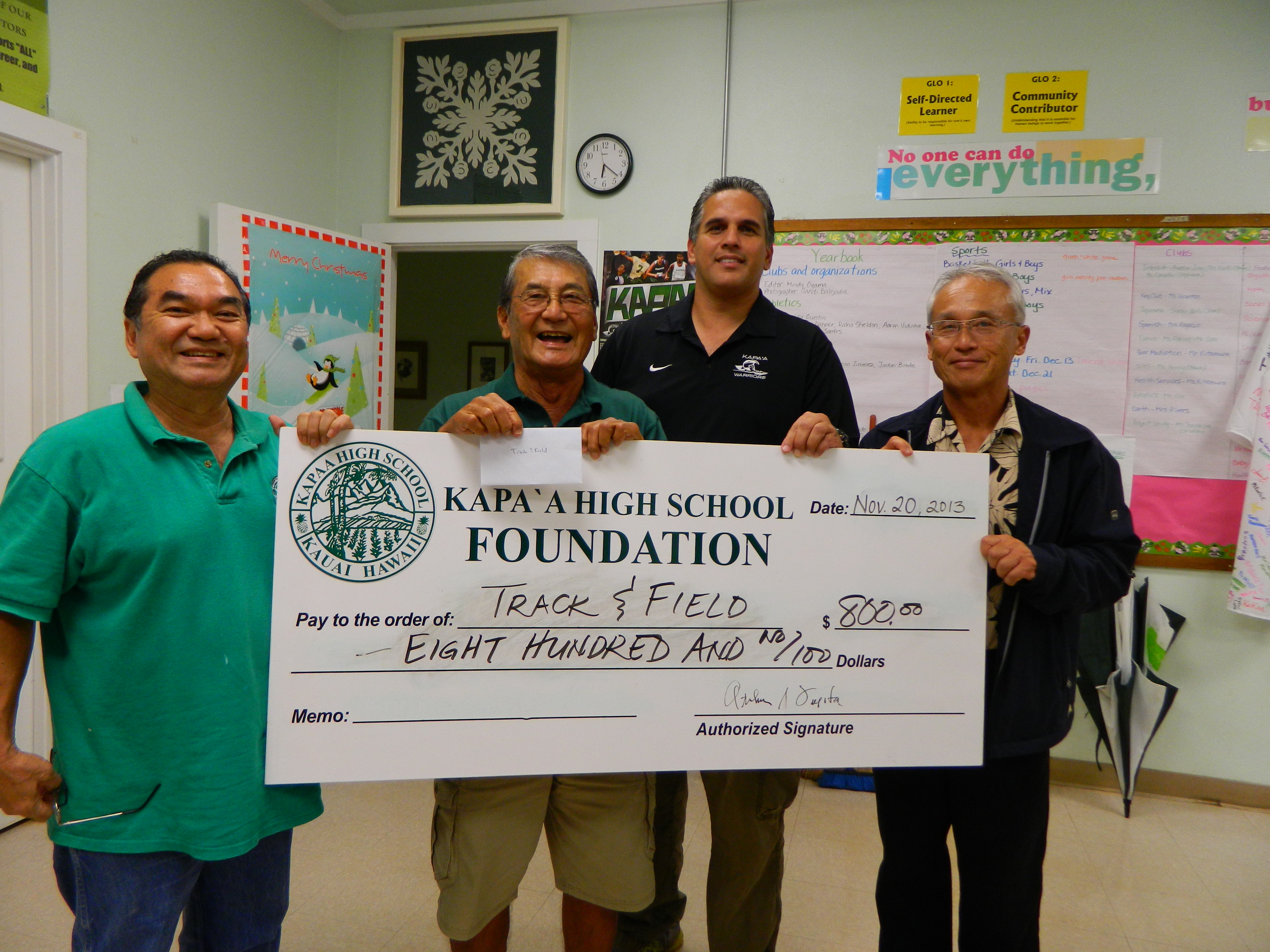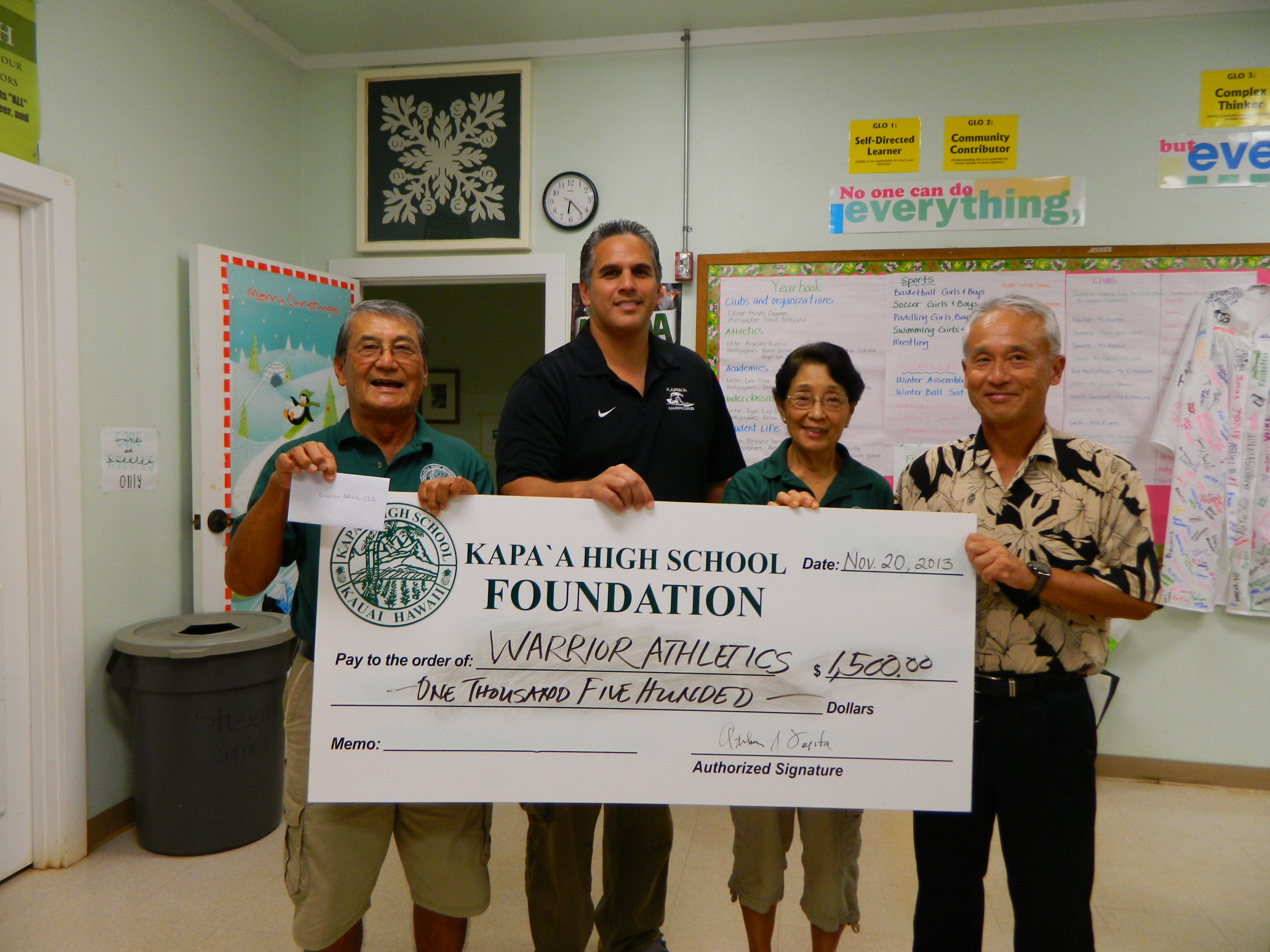 At the final  Board meeting for 2013 held on November 20th, the Foundation awarded grants to four Kapaa High School groups that requested assistance for their programs.