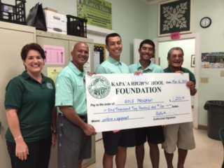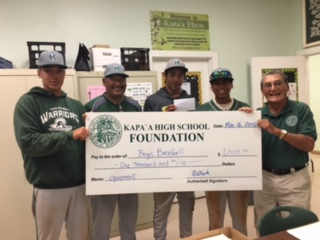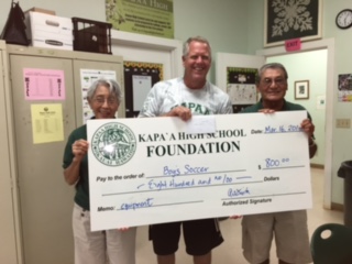 The Kapaa High School Foundation presented grants totally $3000 to the Boys Soccer, Baseball, and Golf teams at the March board meeting.